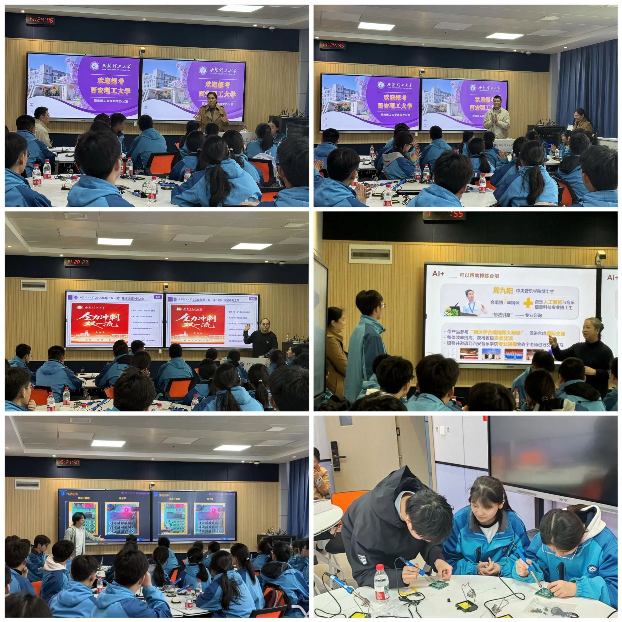 活动在教一楼306智慧教室举行,自动化与信息工程学院教学副院长季瑞瑞主持并致欢迎辞;本科生院招生办公室主任司腾飞老师简要介绍了学校的整体情况,鼓励大家明确目标,夯实基础,为未来踏入理想大学做好准备;付博睿老师为同学们全面介绍了我校的办学历史、学科特色、校园文化,招录政策、师资力量等,充分展示了学校的底蕴与风采。
